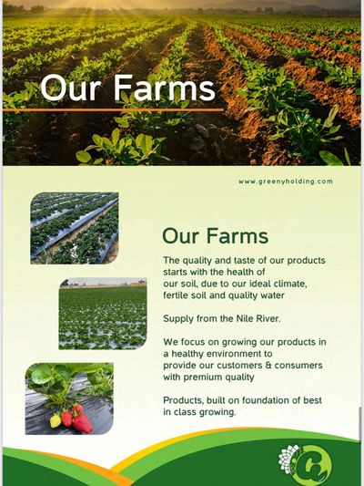 Greeny Farms is a fast growing reclamation and cultivation company, applying modern farming technologies to produce high quality crops suitable for export to competitive and high standard markets. Greeny Farms works in land reclamation, making land suitable for cultivation by providing basic facilities and using modern irrigation technologies. Greeny Farms owns 300 acres in Wadi Molak and in New Salhyia City, growing fresh produce such as oranges, grapefruits, lemons and mandarins and strawberries reputable around the world.Greeny Farms remains on the cutting edge of the agricultural sector by making use of the latest technology in all areas, maximizing efficiency and ensuring optimum performance in each step of production. Greeny Farms holds the “Global GAP” certification. Greeny Farms is committed to avoiding the use of any harmful materials or pesticides in the cultivation process.